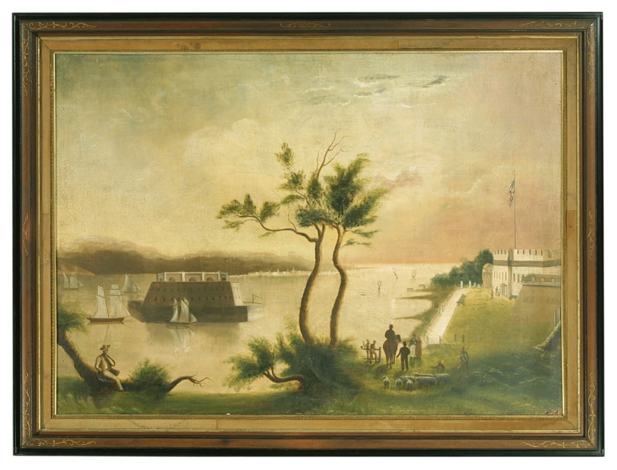 George Washington Mark was a successful house, sign, and furniture painter in Greenfield, Massachusetts, in the early 1800s. Sometime in the 1830s and 40s, he tried his hand at more artistic endeavors creating paintings of local interest -- generally landscapes and historic subjects. Mark created this work depicting Fort Hamilton in Brooklyn, New York, in the 1840s.