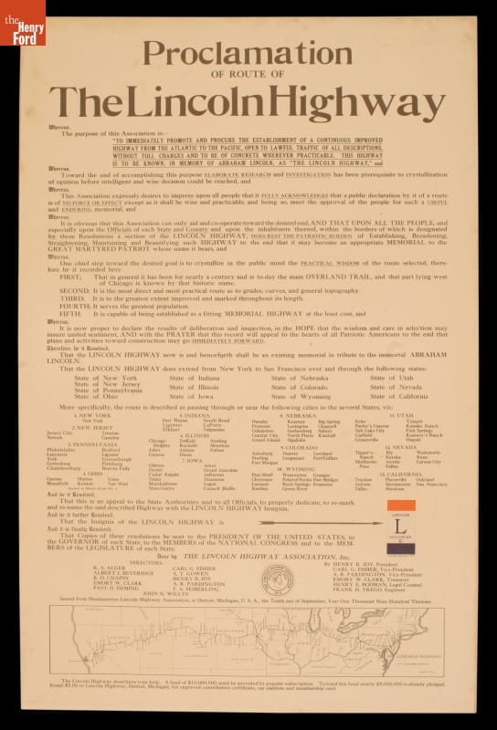 Poster, "Proclamation of the Route of the Lincoln Highway," 1913