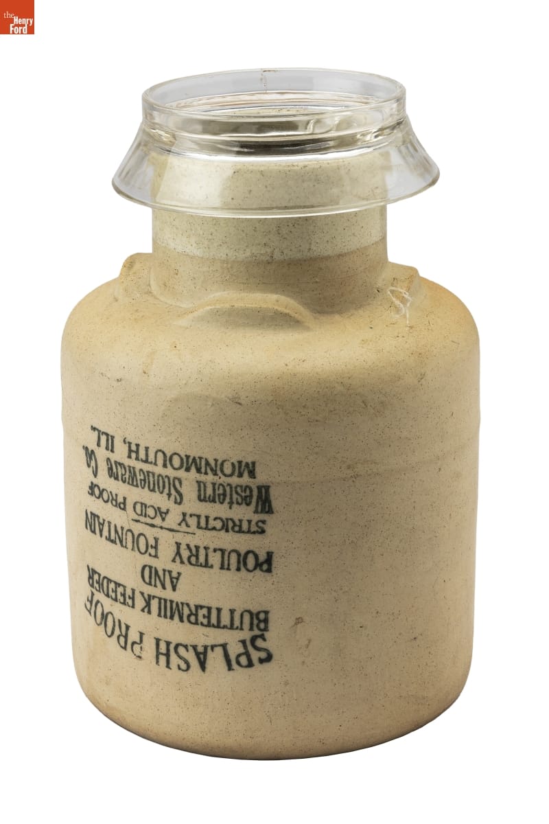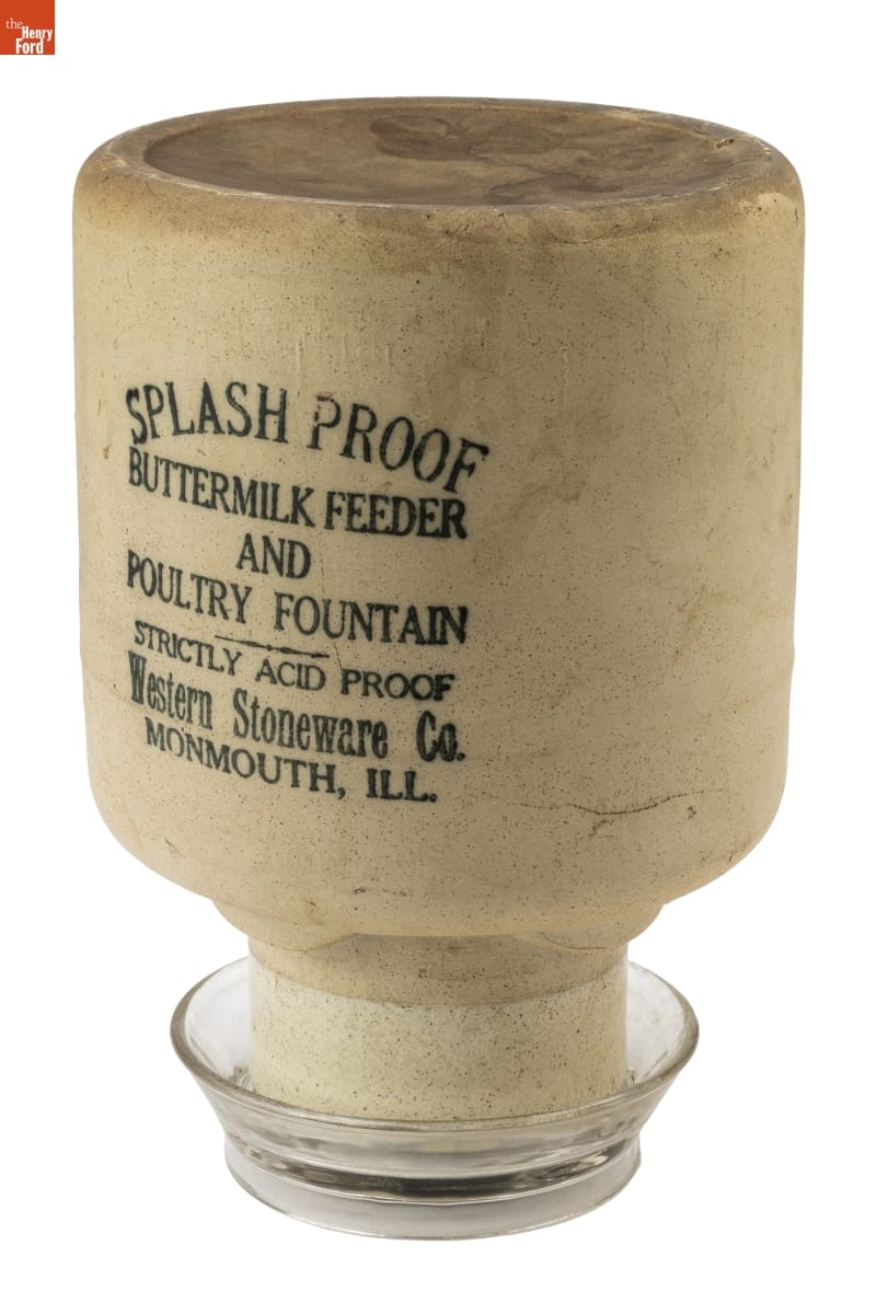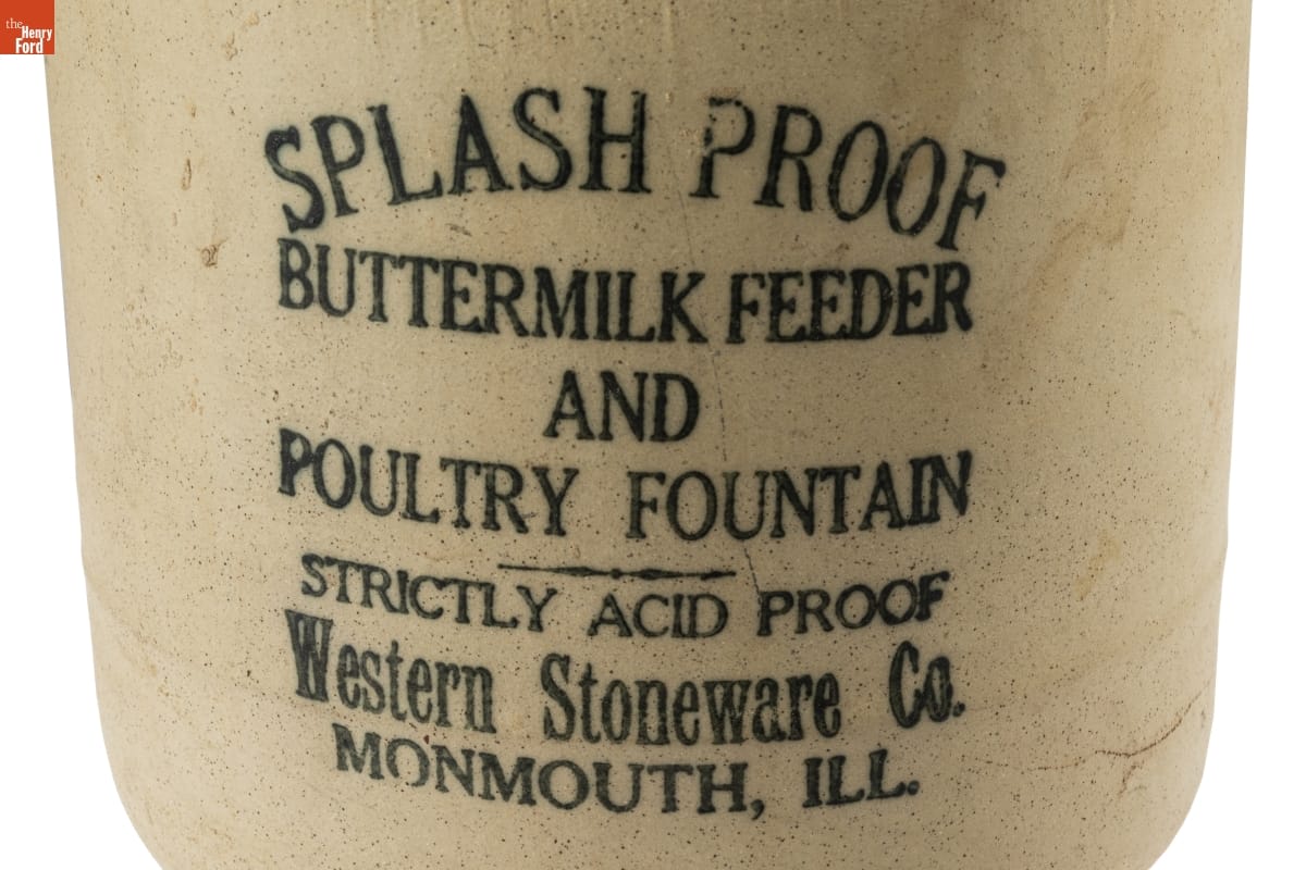 SPLASH PROOF / BUTTERMILK FEEDER / AND / POULTRY FOUNTAIN / STRICTLY ACID PROOF / Western Stoneware Co. / MONMOUTH, ILL.