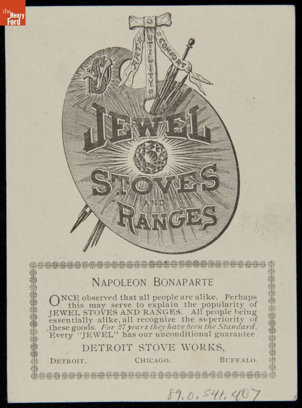 Trade Card for Jewel Stoves and Ranges, Detroit Stove Works, 1888