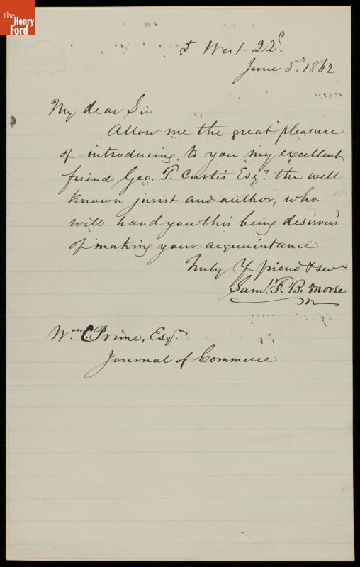 Letter from Samuel Finley Breese Morse to William Cowper Prime, 1862