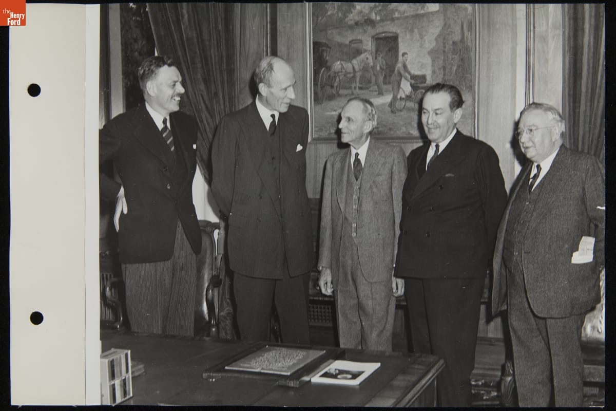 Lord Halifax and Henry Ford with Others in Henry Ford's Office, Engineering Laboratory, November 1941