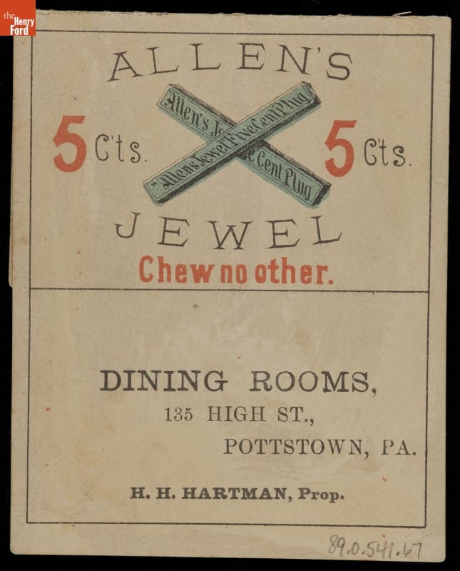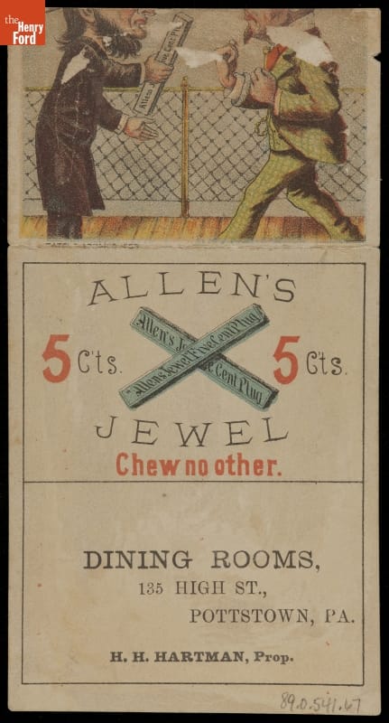 Trade Card for Allen's Jewel Five Cent Plug Tobacco, 1870-1890