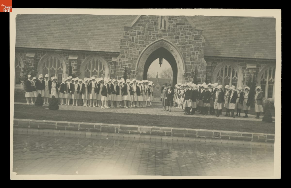 Clara Ford and Martha Berry with Students at Berry College, Mount Berry, Georgia, circa 1927