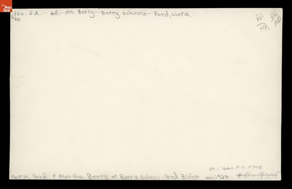 In 1902, Martha Berry established a school near Rome, Georgia, to educate the local underprivileged children. As the school grew, Berry solicited funds from many wealthy Americans. She invited Clara and Henry Ford to the school in 1921. The Fords were impressed. Clara and Henry returned many times over the years and became lifelong benefactors.