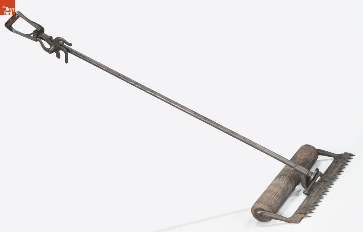 In the years following the American Civil War, improved transit allowed suburbs to grow around cities. Well-kept lawns were a key feature of a suburban home, and the lawn mower was an essential tool. This mower, patented in 1870, was designed for trimming around shrubs and ornamental structures. The operator powered the vibrating sickle bar with a crank wheel (missing from this example).