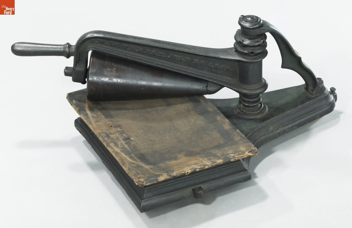 The Lowe printing press was one of the earliest portable, low price American presses designed for amateur use. The usual flat platen was replaced by a rolling conical cylinder--which was an interesting experiment--but produced irregular impressions. Presses like this became a solution during the Civil War to print military orders in the field.