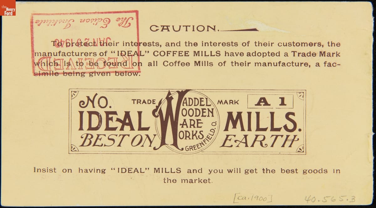 Waddel Wooden Ware Works Catalog, "Ideal Coffee Mills," circa 1900