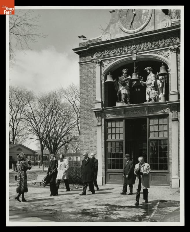 Henry Ford, a watch enthusiast, purchased Sir John Bennett's clock, watch and jewelry store in 1928. The building stood five stories in London, England, but was reassembled into a two-story structure to better fit the scale of Ford's Greenfield Village. In 1972, Lord Mountbatten toured the Henry Ford Museum and Greenfield Village. One stop included the transplanted and modified London building.