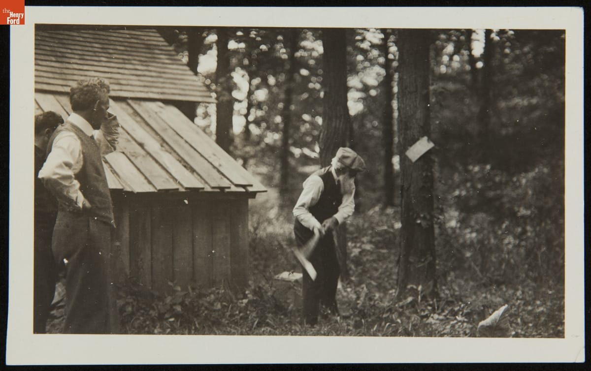 Henry Ford Watching John Burroughs Chopping Wood, Fair Lane, 1916