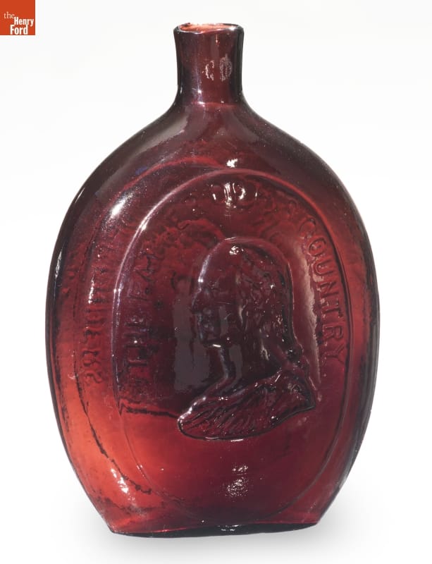 Whether depicted as commander-in-chief, the first president of the United States, or a symbol of the republic, George Washington is a common likeness on early American flasks. Washington appears on 72 recorded flask designs--more than any other person. This example depicts Washington as a classical statesman with major general Zachary Taylor, who became the 12th United States president in 1849.