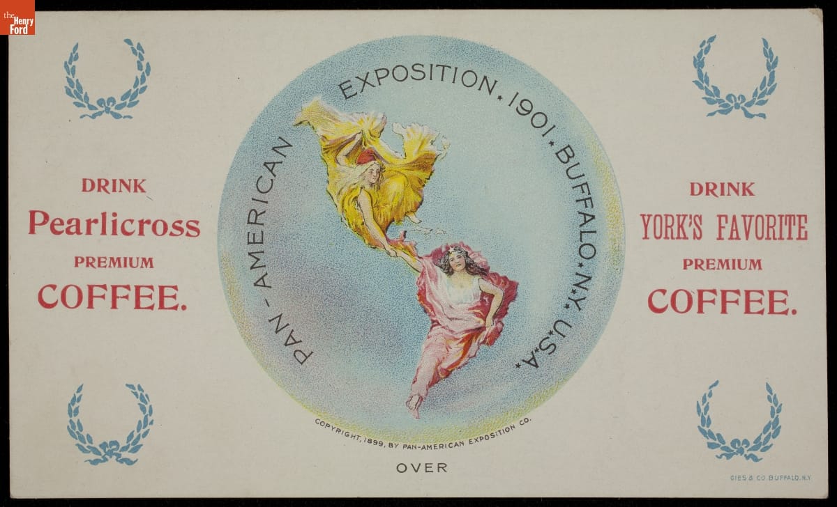 Trade Card for the 1901 Pan-American Exposition, Pearlicross Coffee and York's Favorite Coffee, 1899