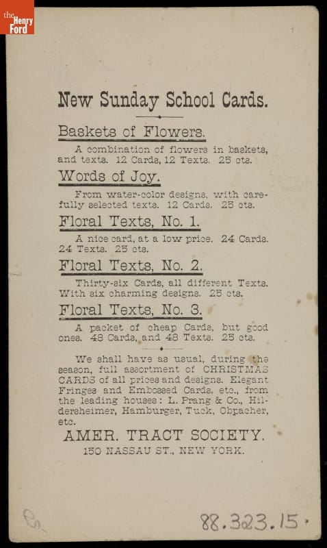Trade Card for Sunday School Cards, American Tract Society, 1878