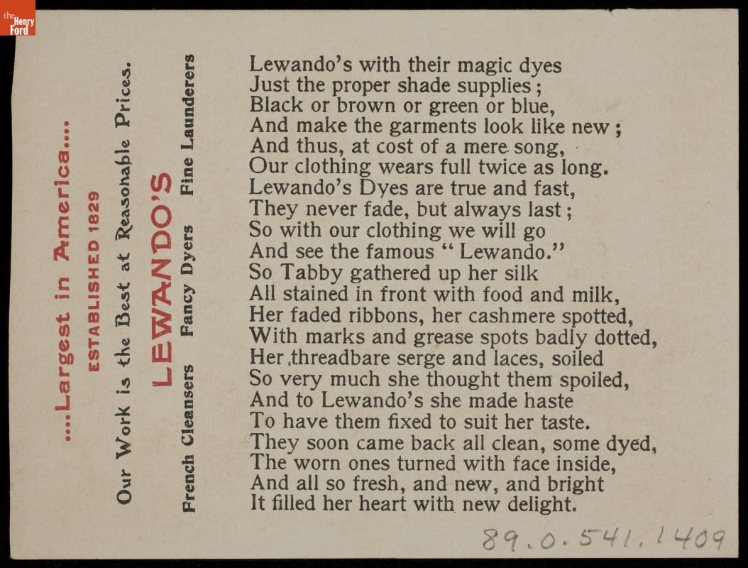 Trade Card for Lewando's Cleaners, 1890-1905