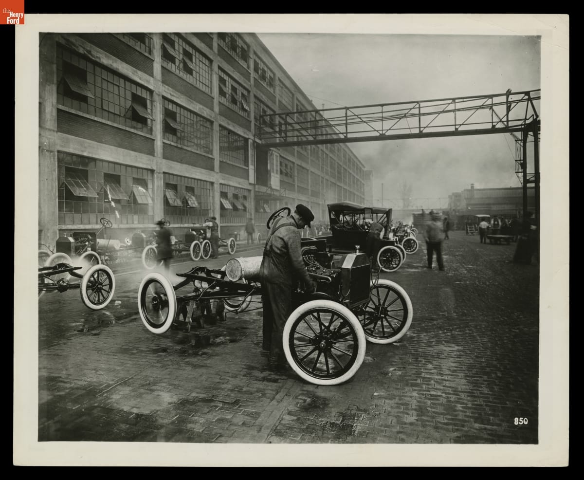 Testing Ford Model T Engines on Chassis outside the Highland Park Plant, 1914