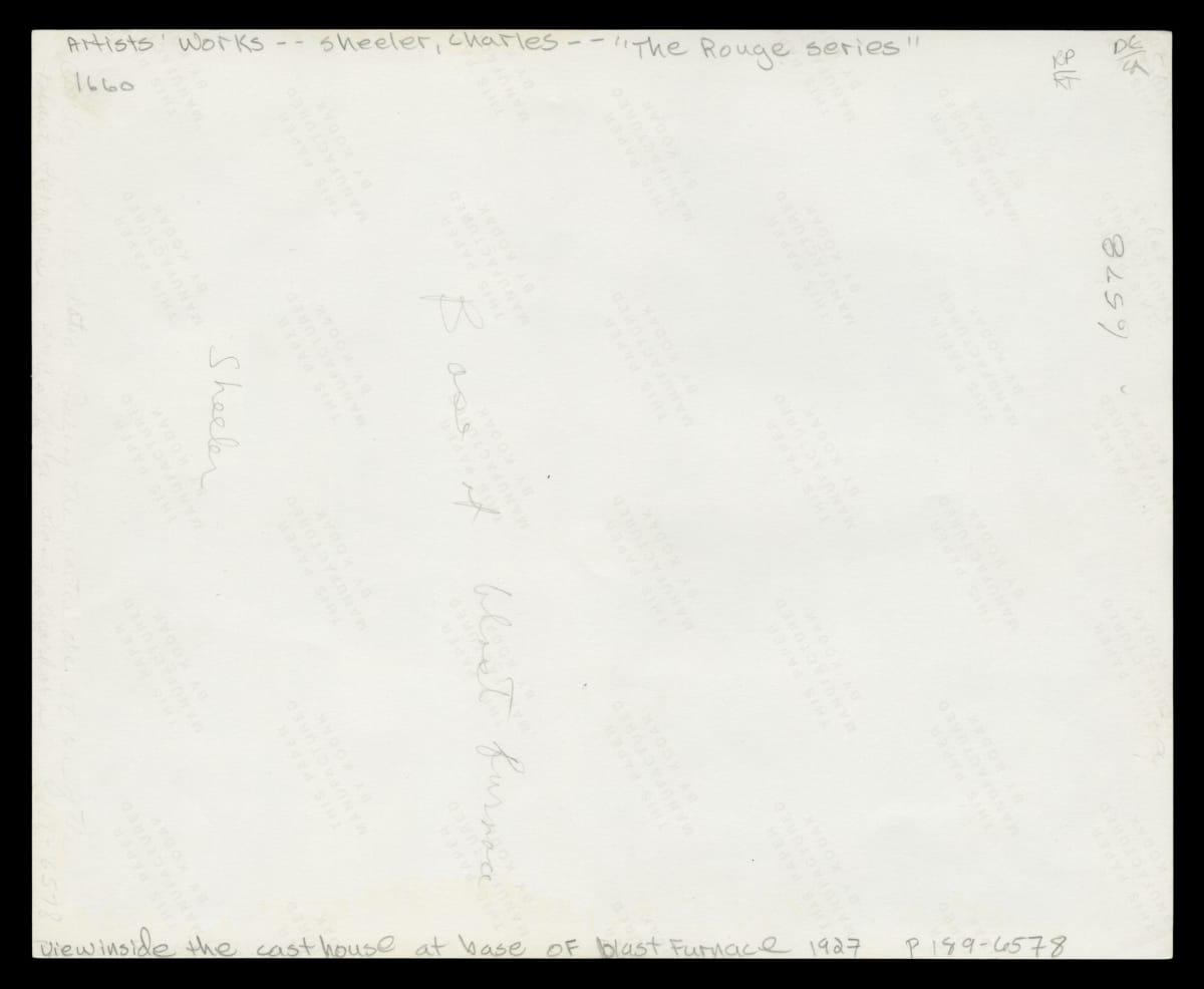 The artist's visit to River Rouge was an outstanding experience which introduced him to a subject he used throughout his career. American industry became the focus of his art for the next thirty years. Sheeler photographed the Rouge for about six weeks, from late October until the end of November, just before the unveiling of the new Ford Model A automobile on December 2, 1927.