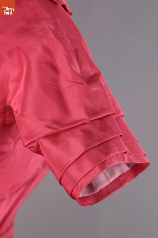 Elizabeth Parke Firestone, wife of tire magnate Harvey S. Firestone, Jr., cultivated a refined sense of fashion through years of interest in clothing design and collaboration with world-renowned couturiers. Firestone purchased a number of dresses from Saks Fifth Avenue's Salon Moderne, an exclusive boutique headed by designer Sophie Gimbel. Gimbel created stylish made-to-measure gowns for fashion-conscious American women of means.