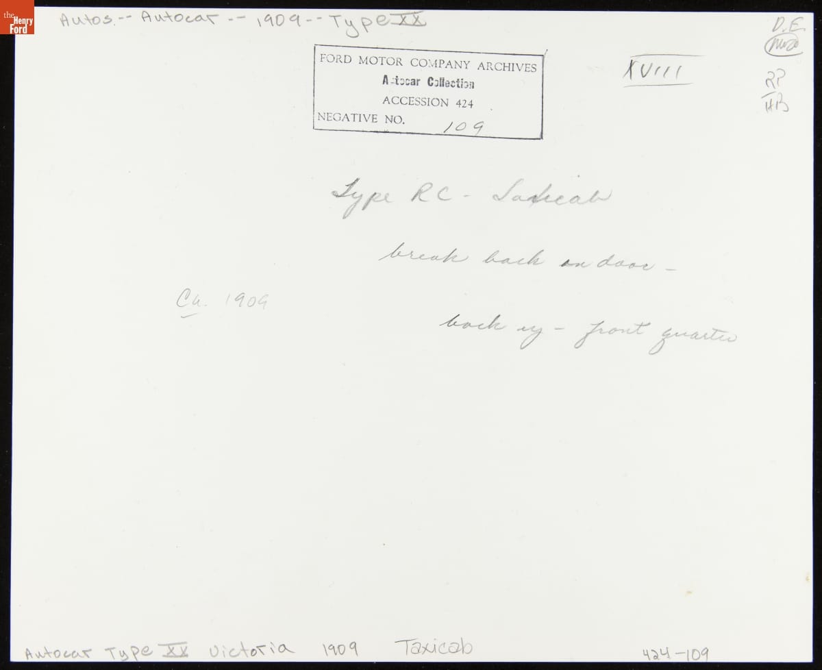 Autocar Type XX Victoria Automobile Used as a Taxicab, 1909