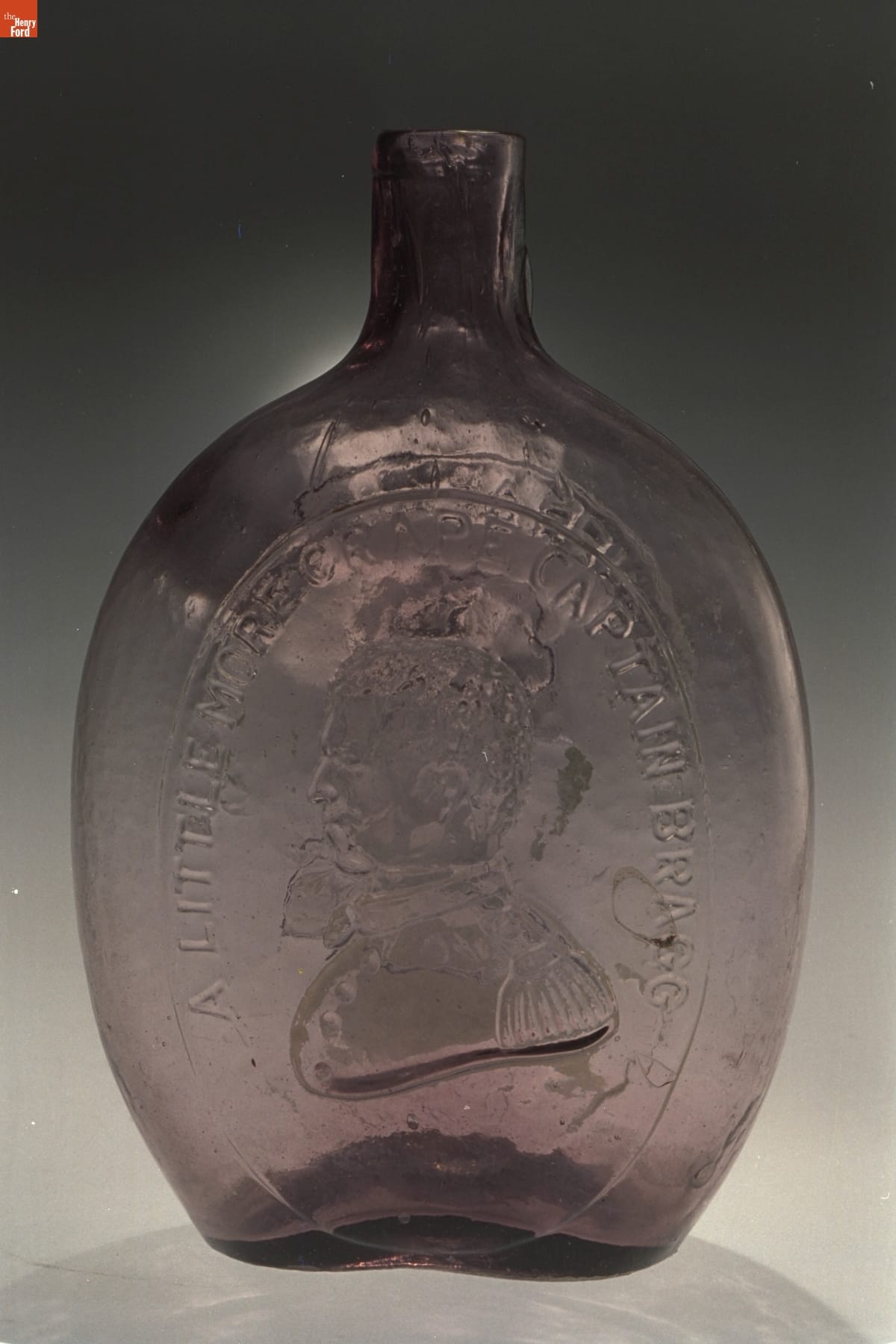 Whether depicted as commander-in-chief, the first president of the United States, or a symbol of the republic, George Washington is a common likeness on early American flasks. Washington appears on 72 recorded flask designs--more than any other person. This example depicts Washington as a classical statesman with major general Zachary Taylor, who became the 12th United States president in 1849.