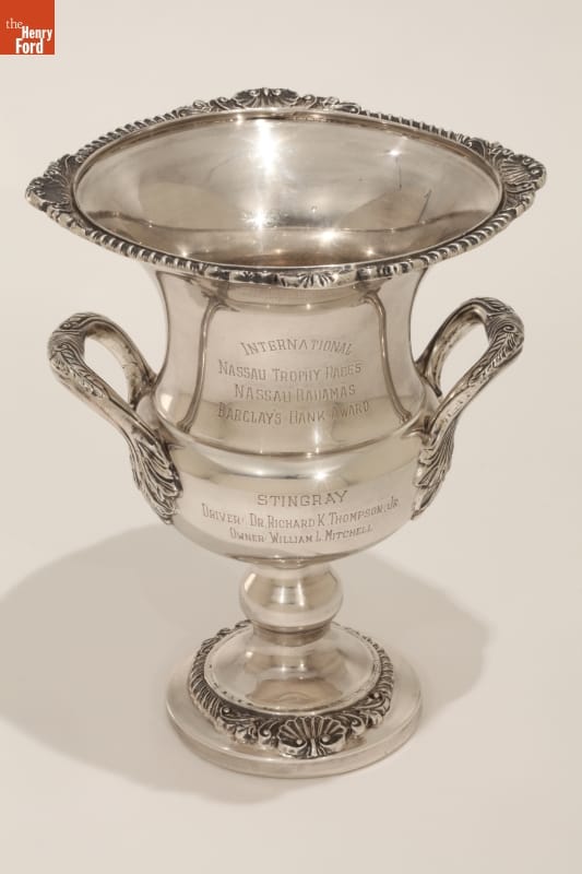 Engraved on obverse: INTERNATIONAL / NASSAU TROPHY RACES / NASSAU, BAHAMAS / BARCLAY'S BANK AWARD / STINGRAY / DRIVER: DR. RICHARD K. THOMPSON / OWNER: WILLIAM L. MITCHELL