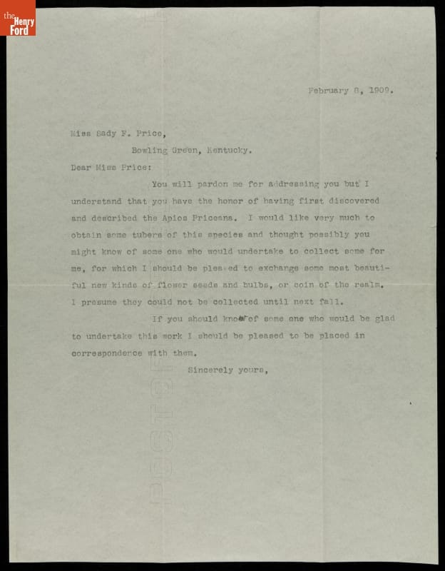 Letter from Luther Burbank to Sadie F. Price, 1909