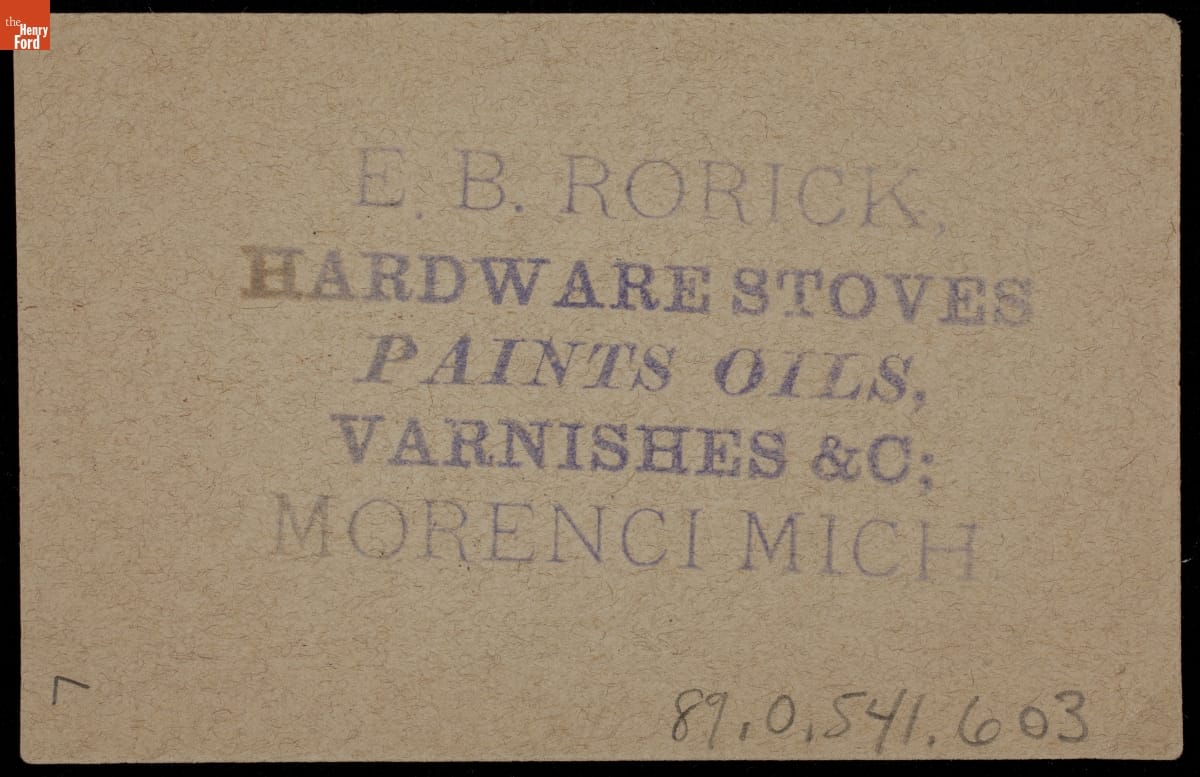 Trade Card for E. B. Rorick, "A Happy New Year," 1870-1890