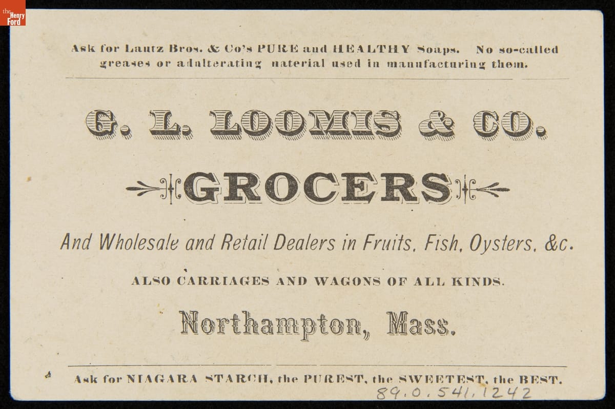 In the last third of the nineteenth century, an unprecedented variety of consumer goods and services flooded the American market. Advertisers, armed with new methods of color printing, bombarded potential customers with trade cards. Americans enjoyed and often saved the vibrant little advertisements found in product packages or distributed by local merchants. Many survive as historical records of commercialism in the United States.
