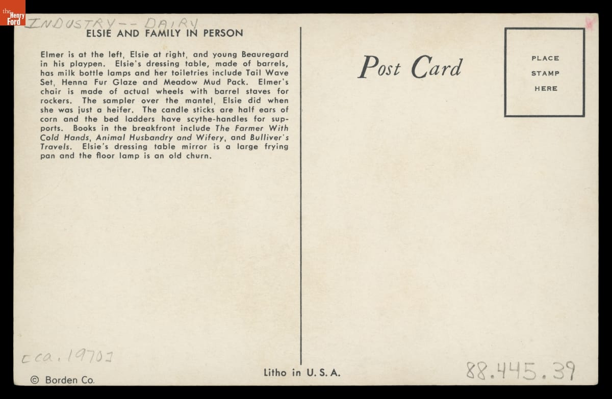 Elsie, Elmer and Beauregard are Traveling Representatives of Borden's Family of Fine Foods, 1947-1957