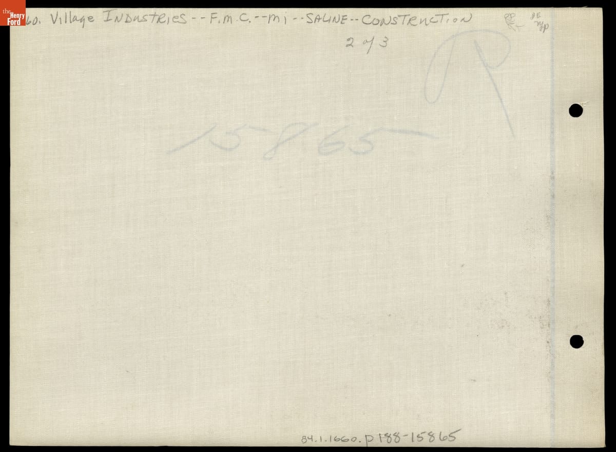 In the early 1920s, Henry Ford began locating small hydroelectrically powered plants in rural southeast Michigan. These "Village Industries" employed local people who could maintain farms while working at the factory. One plant, constructed in Saline in the mid-1930s, operated until 1947. During World War II, workers here processed soybean oil for paints and plastics and machined parts for Pratt & Whitney engines.