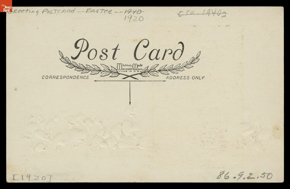 "Easter Greetings, May This Easter Be For You a Time of Joy and Gladness," circa 1920