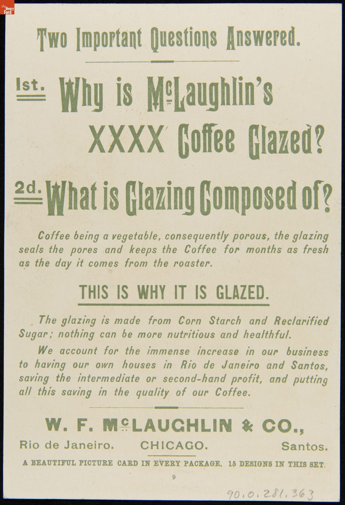 Trade Card for McLaughlin's XXXX Coffee, W.F. McLaughlin & Co., 1892