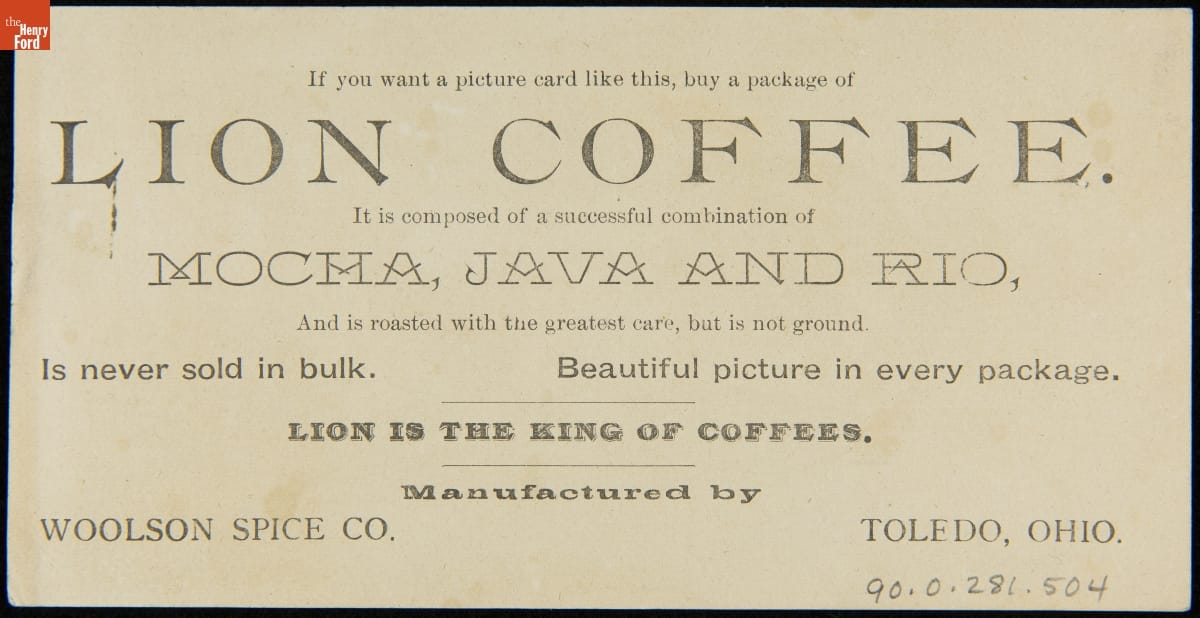 Trade Card for Lion Coffee, Woolson Spice Co., 1882-1900