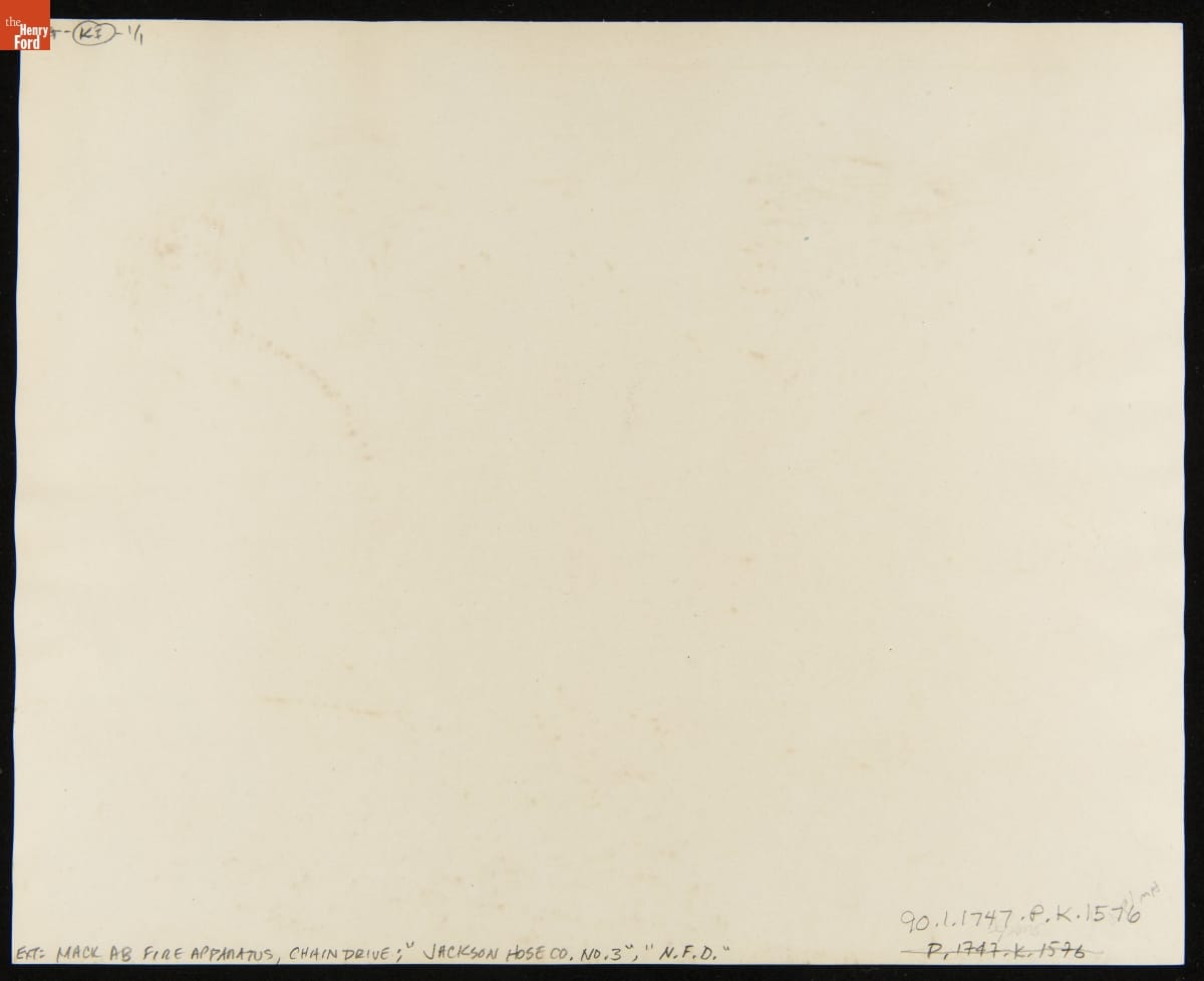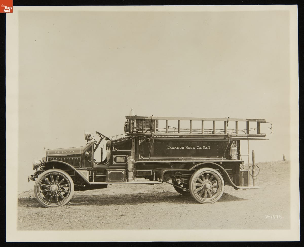Mack Model AB Fire Truck Equipped with Chain Drive, "Jackson Hose Co. No. 3 N.F.D," 1911-1916