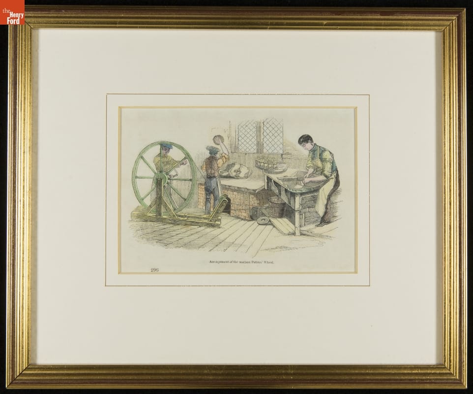 Engraving, "Arrangement of the Modern Potter's Wheel," circa 1860