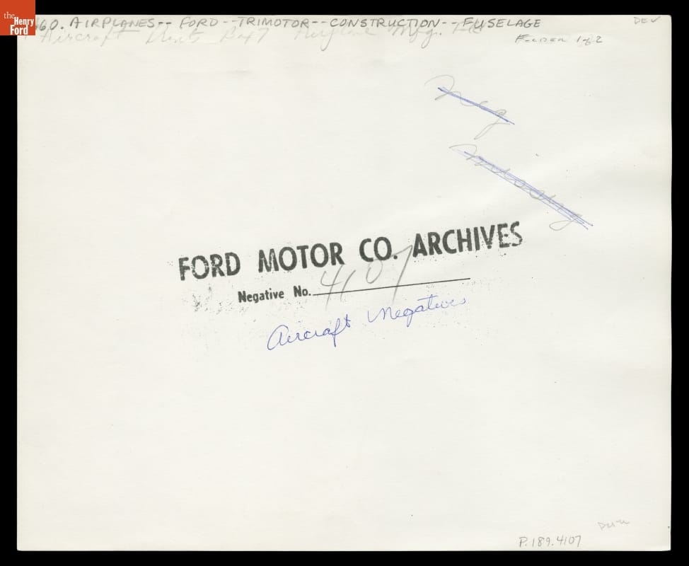FORD MOTOR CO. ARCHIVES | Negative No. 4107 | Aircraft Negatives