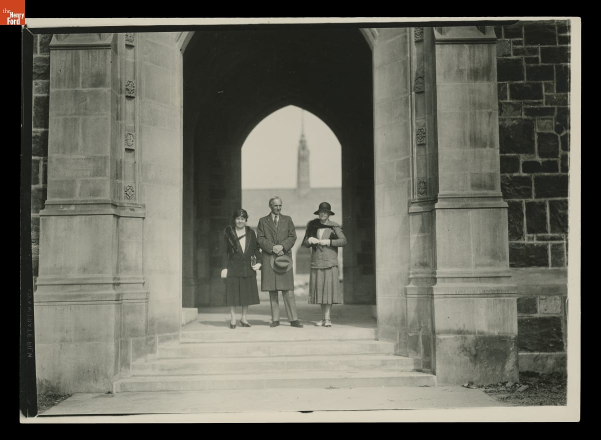 Clara Ford, Henry Ford, and Martha Berry at Berry College, Mount Berry, Georgia, circa 1927