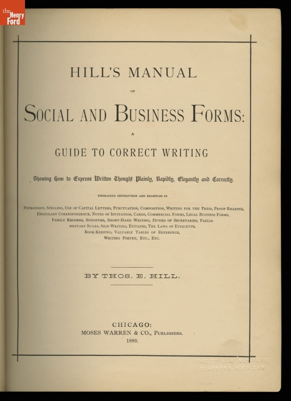 Written by Thomas E. Hill. Published by Moses Warren & Co., Chicago, Illinois.