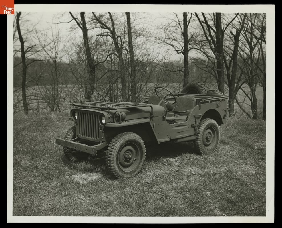 Like other American automakers, Ford Motor Company suspended civilian production during World War II. Instead, the company devoted its employees and factories to manufacturing Allied war materiel. Ford facilities produced aircraft engines, bomber airplanes, gliders, tanks, armored cars, and -- as seen here -- GPW jeep vehicles. More than 282,000 jeeps rolled off Ford assembly lines from 1941-1945.
