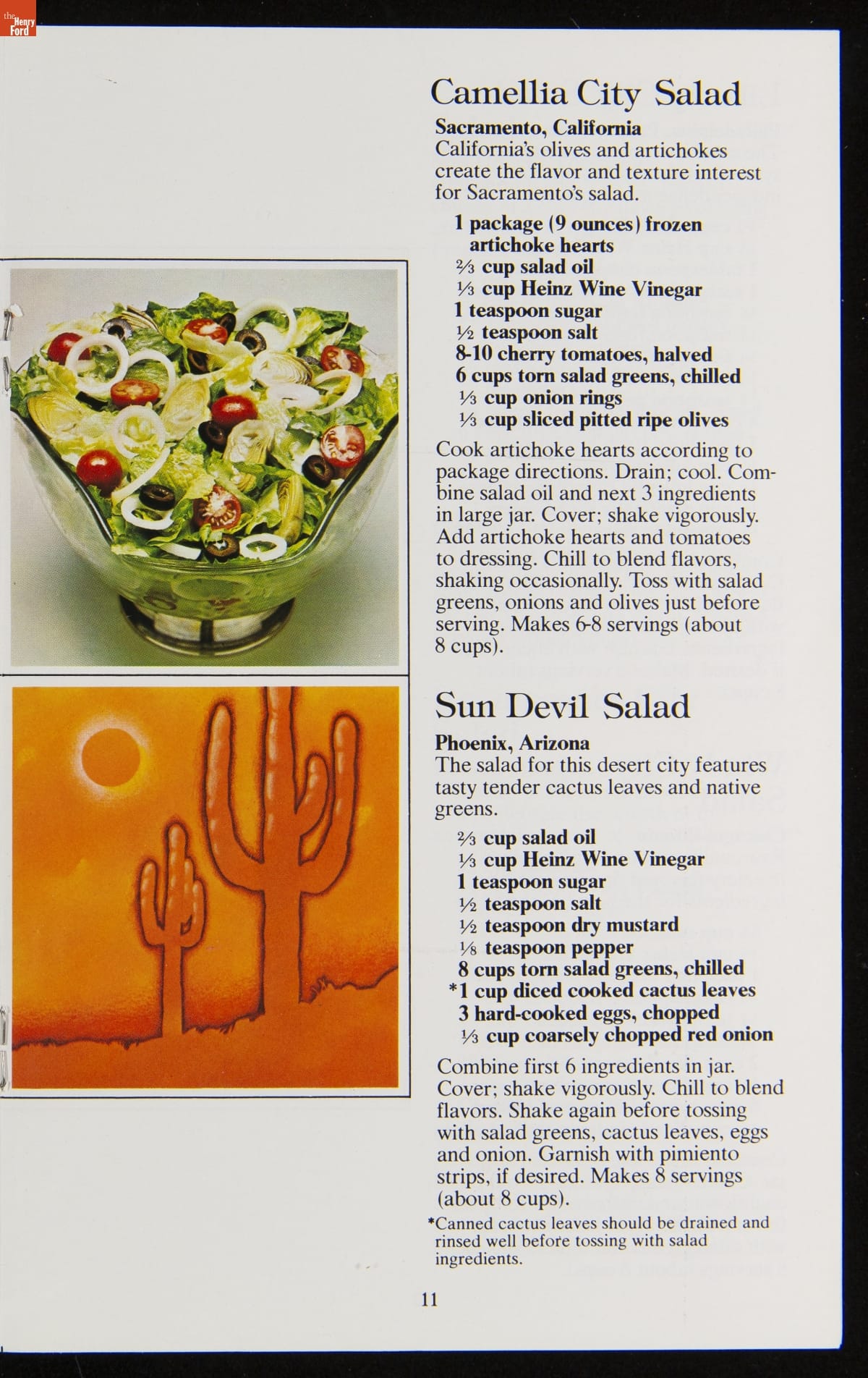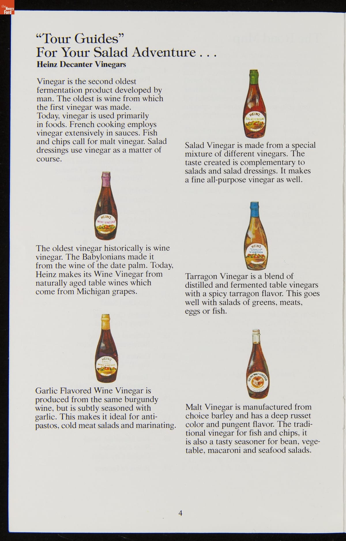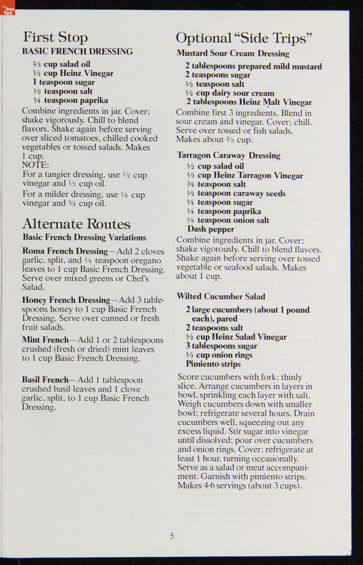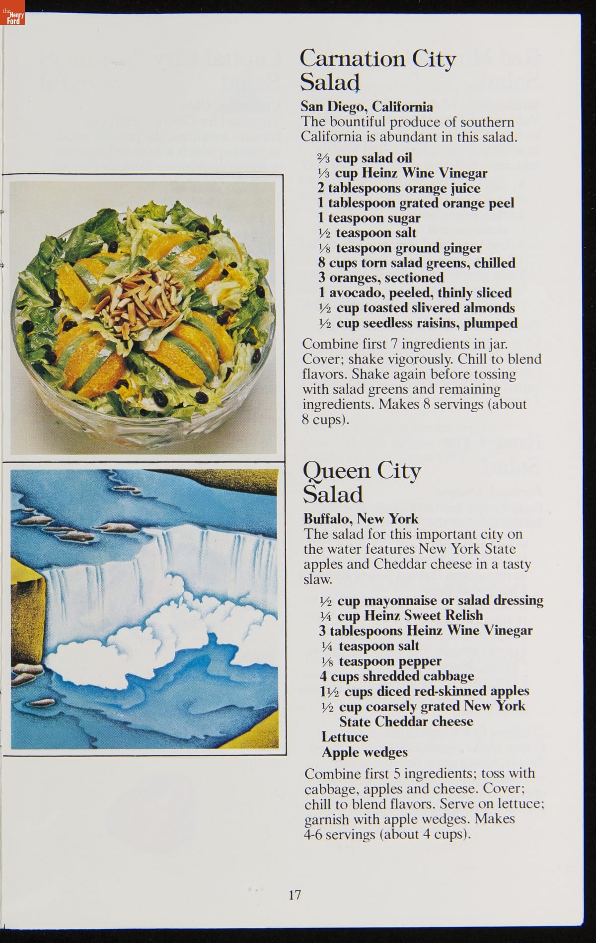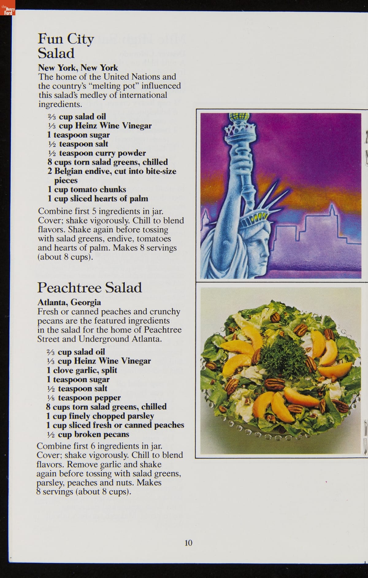 The H.J. Heinz Company had humble beginnings in 1869 and has since become one of the most recognized names in the food industry. Recipe booklets produced by the company offer readers creative uses for many of Heinz's famous "57 Varieties." This recipe booklet features recipes for salads from across the United States, utilizing Heinz vinegars and salad dressings.