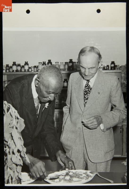 George Washington Carver and Henry Ford at the Carver Nutrition Laboratory, Dearborn, Michigan, 1942