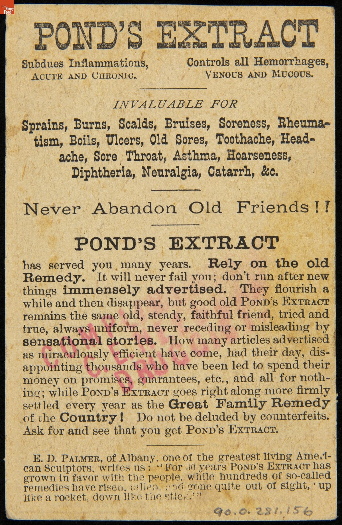 Trade Card for Pond's Extract, Pond's Extract Co., 1886-1910