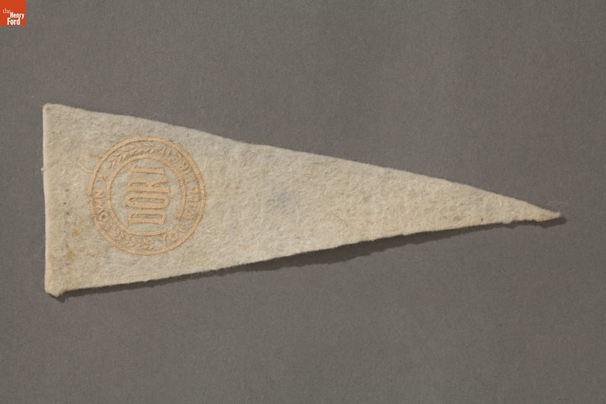 This small pennant giveaway promoted Dort ownership. Dort Motor Car Company began manufacturing cars in 1915. Even though this giveaway urged consumers to "Own a Dort -- You will like it," the company ceased vehicle production in 1924.