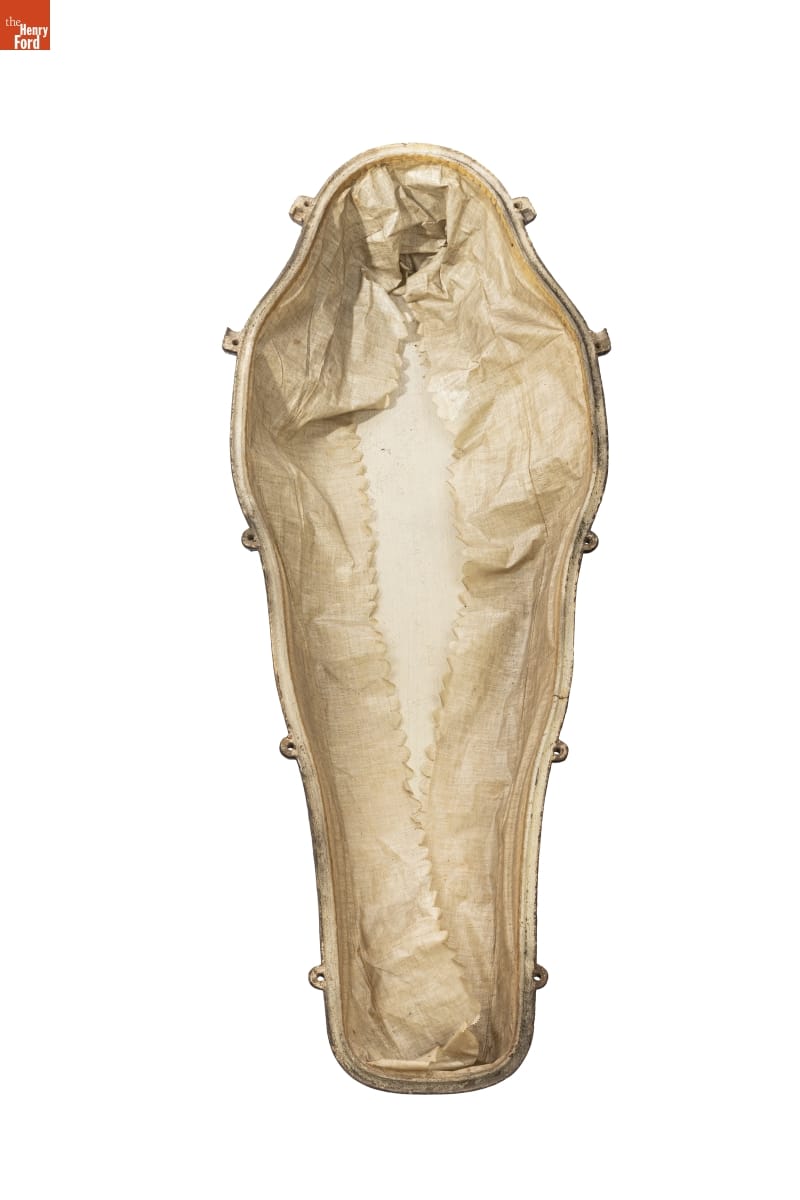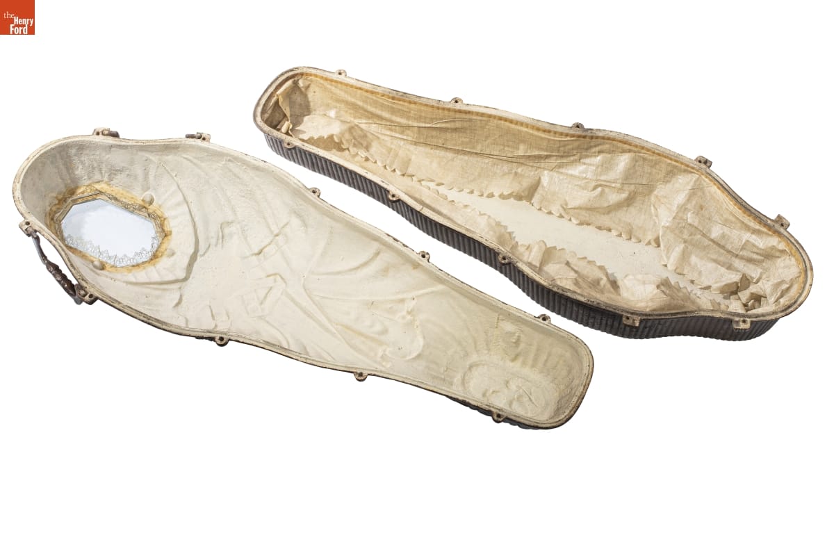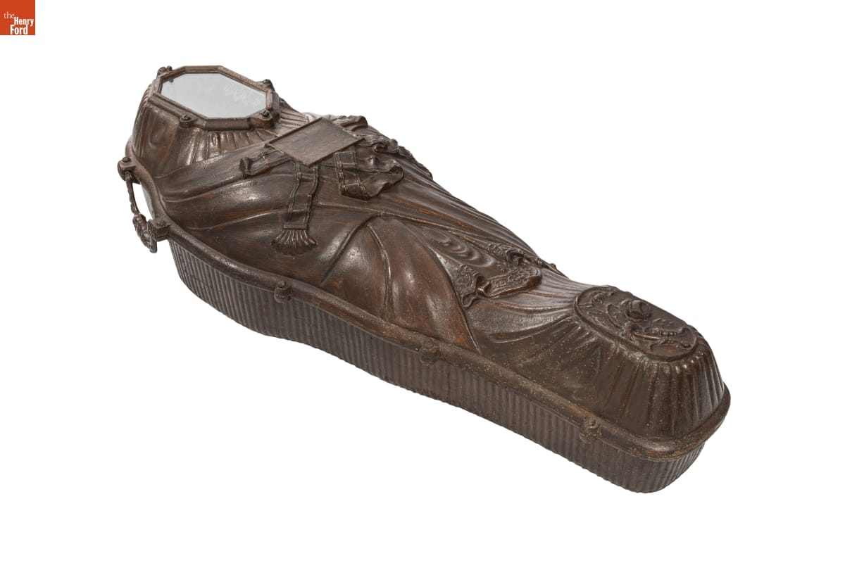In the early- to mid-1800s, transportation improvements allowed Americans to travel great distances. It also meant that they could die far from home. Before modern embalming procedures, returning the deceased for proper internment was difficult. Airtight metal coffins preserved the body for transport, providing families an opportunity to mourn and bury their loved ones at home.
