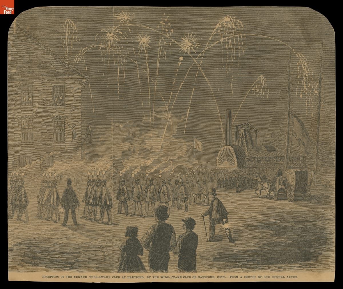 "Reception of the Newark Wide-Awake Club at Hartford," 1860