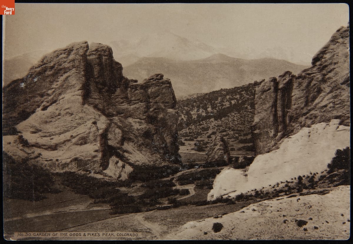 Trade Card for C.I. Hood & Co. with Hood's Photos of the World, "Garden of the Gods, Pike's Peak, Colorado," 1890-1910