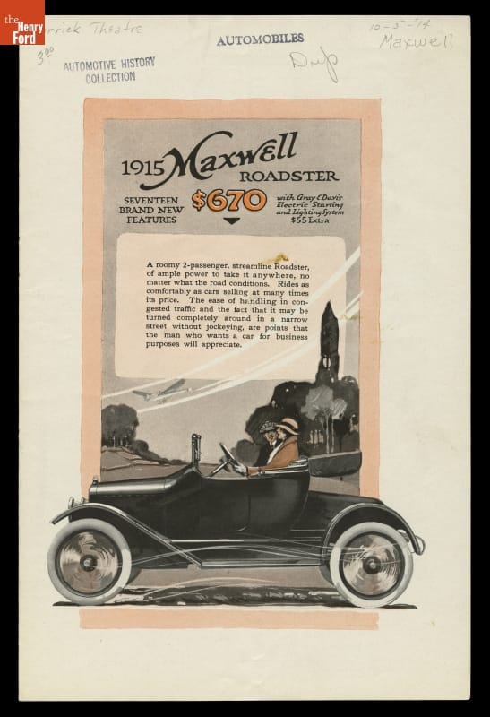 1915 Maxwell Advertisement, "17 Brand New Features with Gray & Davis Electric Starting and Lighting System"