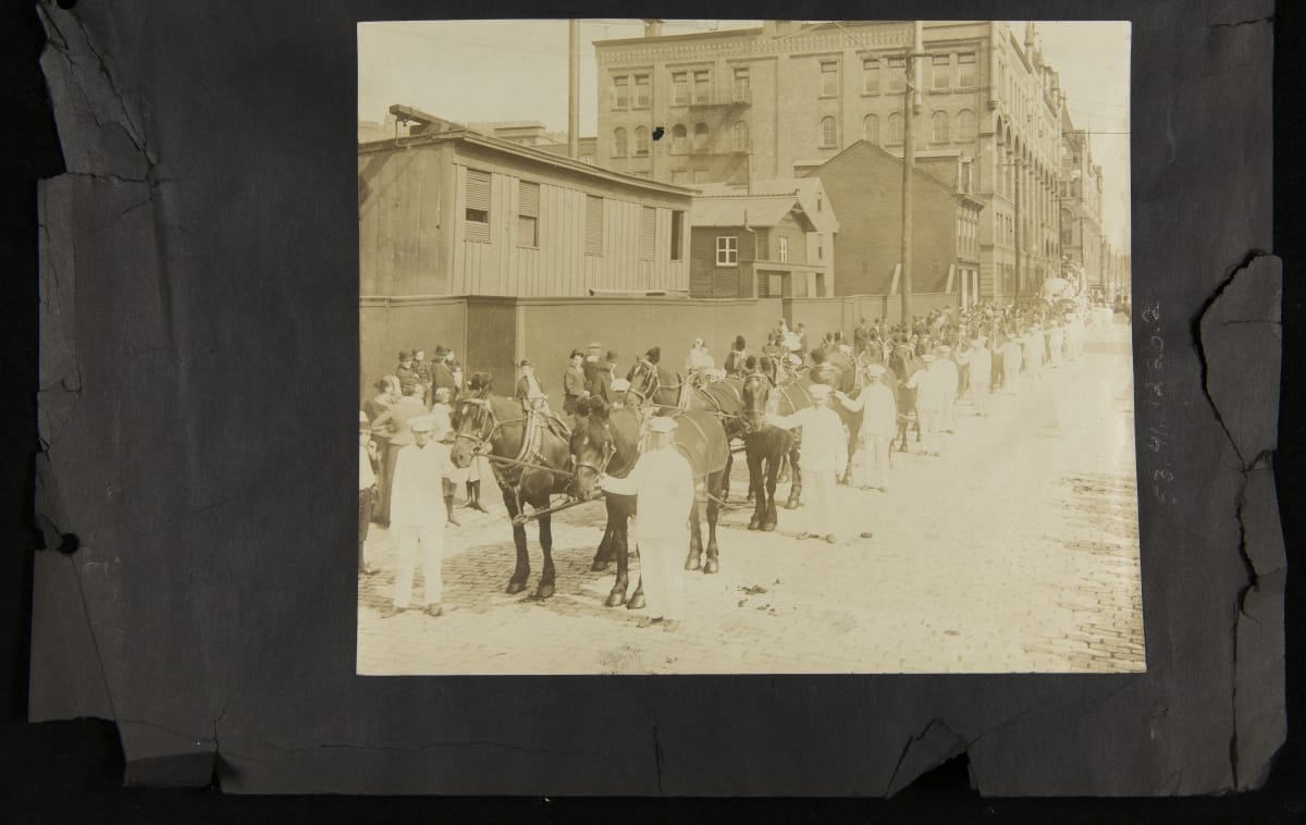 Horses Pulling the H. J. Heinz Company "Goddess of Plenty" Float at Pittsburgh's Sesqui-Centennial Celebration, 1908