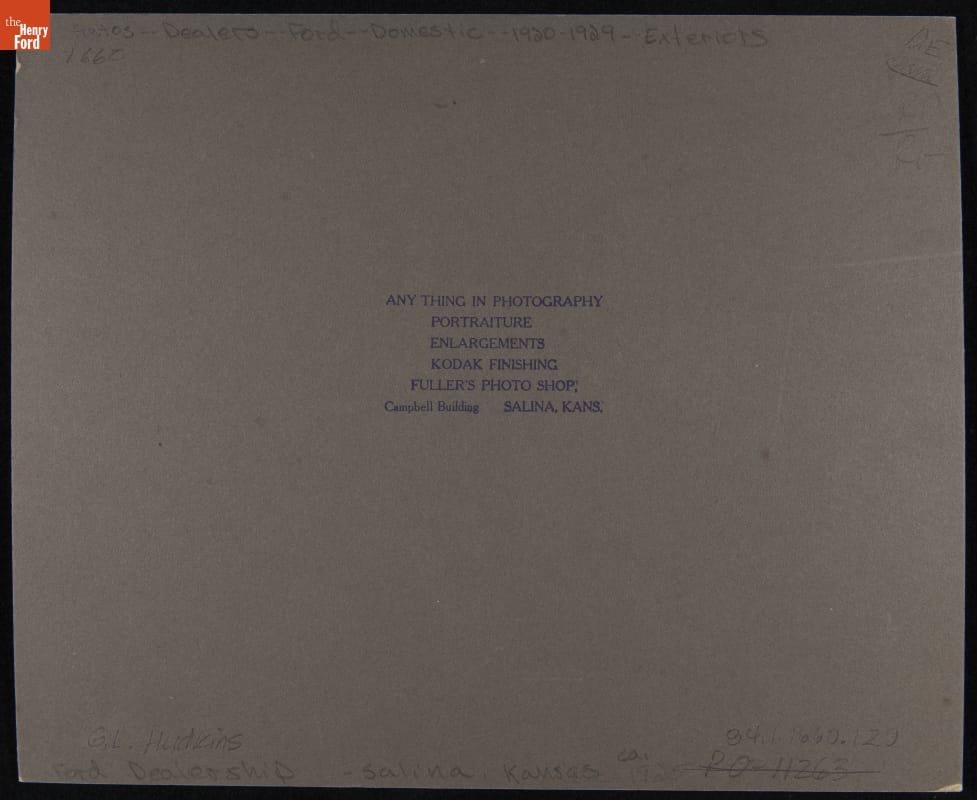 G. L. Hudkins Ford Dealership, Salina, Kansas, circa 1925