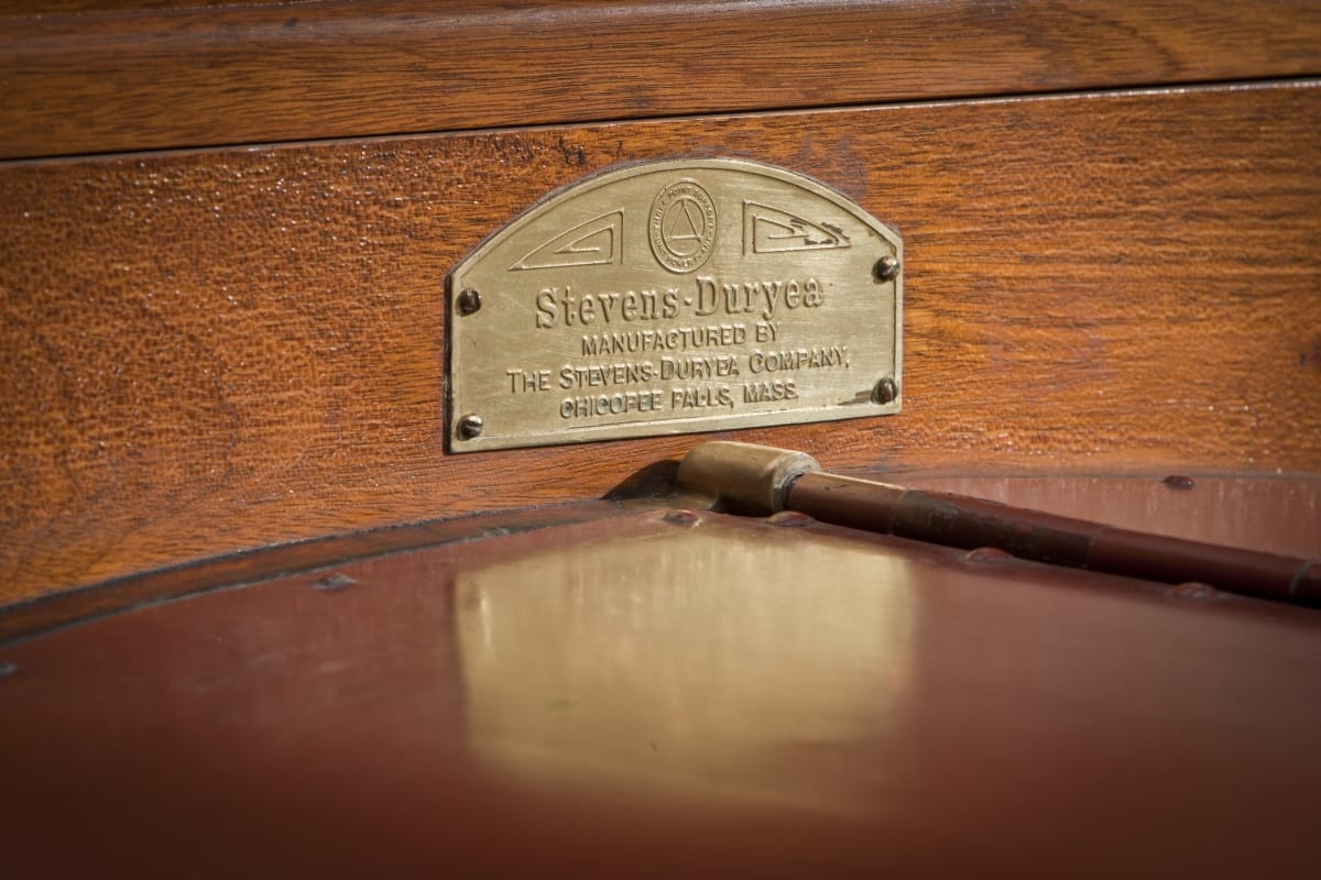 Plate on dash: THREE POINT SUPPORT UNIT POWER PLANT [in circle] STEVENS-DURYEA / MANUFACTURED BY / THE STEVENS-DURYEA COMPANY / CHICOPEE FALLS, MASS.