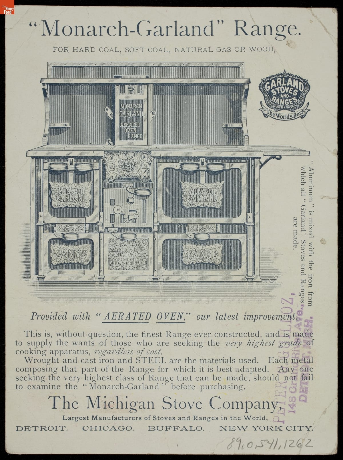 Trade Card for the Monarch-Garland Range, Michigan Stove Co., 1880-1900